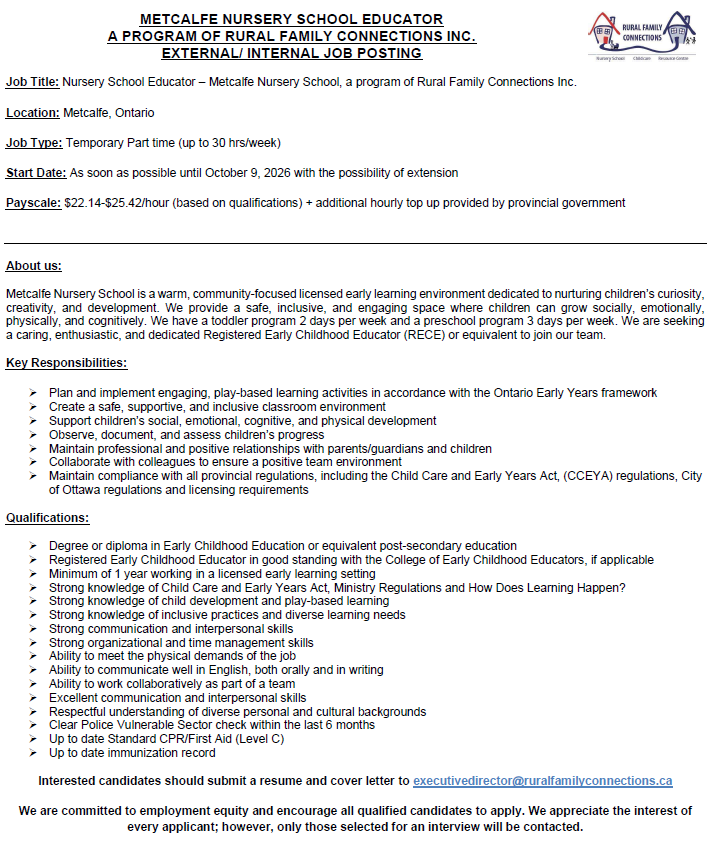 Rural Family Connections is always looking for supply educators. Please email your resume to admin@ruralfamilyconnections.ca